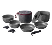 La Batería de Cocina Camping Lima está diseñada para quienes buscan una solución práctica y eficiente para sus viajes. Fabricada en aluminio de alta calidad con revestimiento antiadherente, garantiza durabilidad, un tamaño lo más compacto posible y una excelente relación calidad precio.