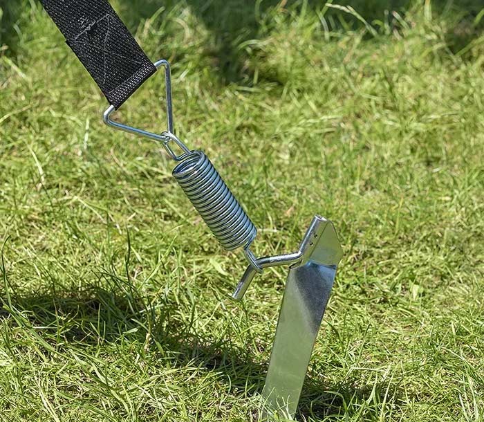 Muelles Tensores: Estas cinchas anti-viento están equipadas con muelles tensores que proporcionan una tensión constante y aseguran una sujeción firme del toldo.