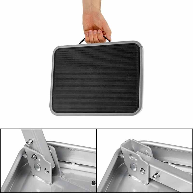 El peldaño plegable ligero y compacto es la solución perfecta para acceder cómodamente a furgonetas, campers y autocaravanas. Su tamaño ultracompacto permite guardarlo en cualquier espacio, y su superficie antideslizante junto con el pestillo de seguridad garantizan un uso estable y seguro. Además, también es ideal para utilizar en el hogar como ayuda adicional para alcanzar zonas elevadas.