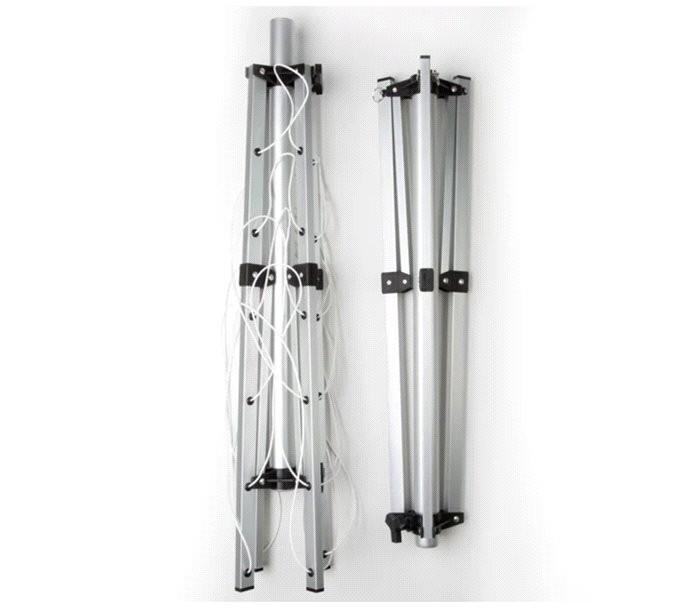 - Montaje sencillo: sistema tipo paraguas, sin herramientas.