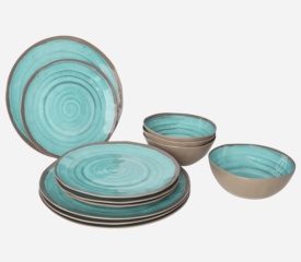 Vajilla de Melamina Halo Aqua – Juego de 12 Piezas